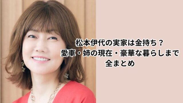 タレント 松本伊代の実家は金持ち?愛車・姉の現在・豪華な暮らしまで全まとめ 2025年12月15日 ☆Miho☆ Smile Happy Life 昭和のアイドルとして一世を風靡し、今もバラエティ番組などで親しまれている松本伊代さん。そんな松本伊代さんについて「実家は金持ちだったらしい …
