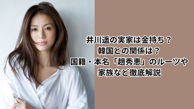 俳優・女優 井川遥の実家は金持ち?韓国との関係は?国籍・本名「趙秀恵」のルーツや家族など徹底解説 2025年11月13日 ☆Miho☆ Smile Happy Life 井川遥さんは、上品で落ち着いた雰囲気のある女優さんですよね。ドラマや映画で活躍してて、「やっぱり素敵な方」と思います。 そんな井川遥 …